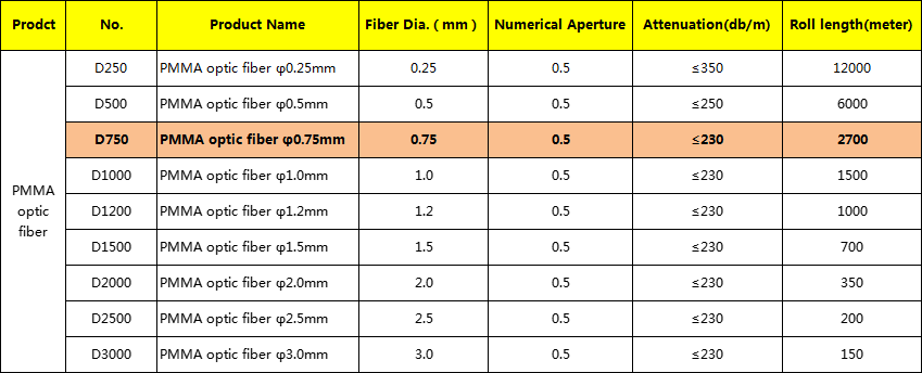 Product Name:0.75mmPlastic Optic Fiber